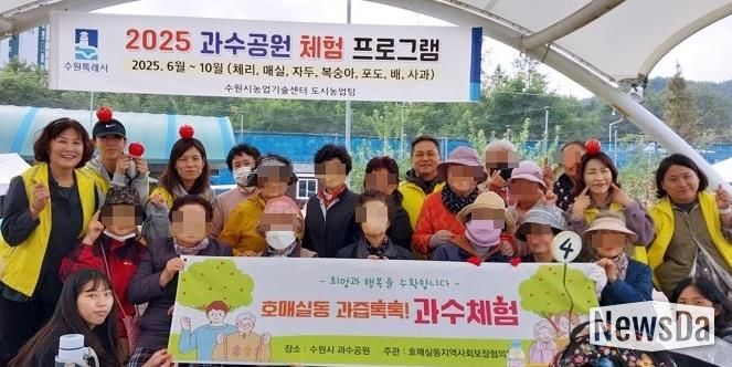 뉴스다 최광묵 기자 | 수원시 권선구 호매실동 지역사회보장협의체는 지난 20일, 저소득 홀몸 어르신들을 모시고 과수 체험(사과 따기)에 나섰다. 이번 행사는 관내 홀몸 어르신들의 우울감 등을 예방하고 사회적 관계망을 만들기 위해 진행됐다.