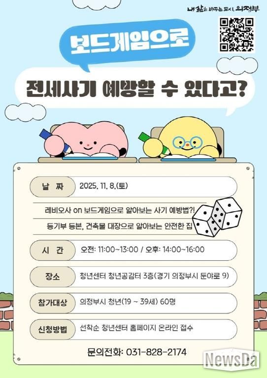 뉴스다 최광묵 기자 | 의정부시는 11월 8일 운영 예정인 전세사기 피해 예방 교육용 보드게임 프로그램 ‘레비오사 보드ON’에 참여할 청년을 모집한다.