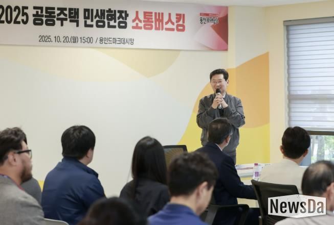 뉴스다 최광묵 기자 | 이상일 용인특례시장이 20일 오후 처인구 김량장동에 있는 ‘용인드마크데시앙’ 공동주택에서 ‘공동주택 민생현장 소통버스킹’을 열고 입주민들과 소통했다.