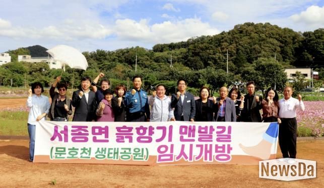 뉴스다 최광묵 기자 | 양평군 서종면은 지난 17일 오후 1시, 서종면 문호리 968 일대 문호천 생태공원에서 ‘서종면 흙향기 맨발길’ 임시 운영을 기념하는 걷기 행사를 개최했다.