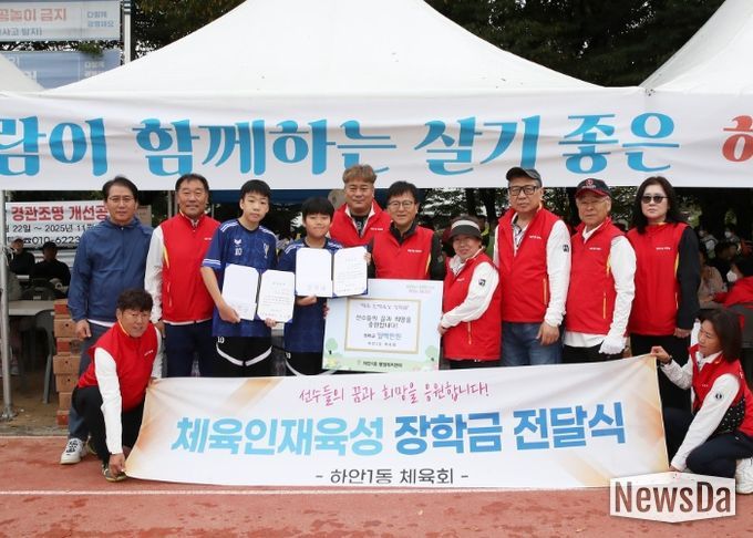 뉴스다 최광묵 기자 | 광명시 하안1동 체육회는 지난 18일 열린 광명시민화합 체육대회에서 지역의 유망 체육 청소년 2명에게 총 100만 원의 장학금을 전달했다.