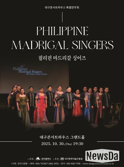 뉴스다 최광묵 기자 | 대구문화예술진흥원 대구콘서트하우스는 세계적 합창단체를 초청해 유네스코 음악창의도시 대구의 위상을 알리고, 시민들에게 수준 높은 합창 무대를 선보이고자 ‘필리핀 마드리갈 싱어즈’ 공연을 준비했다.