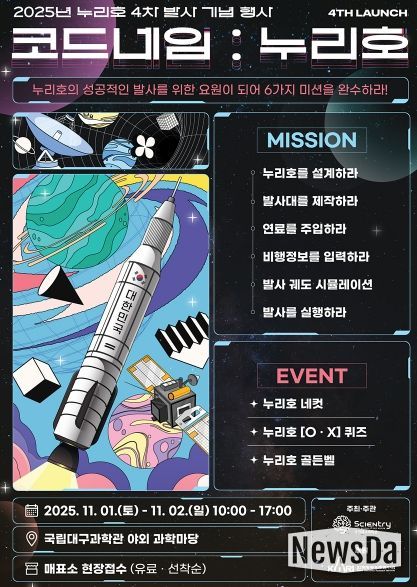 뉴스다 최광묵 기자 | 국립대구과학관은 오는 2025년 11월 27일로 예정된 누리호 4차 발사를 기념해, 우주개발에 대한 국민적 관심을 높이고 과학문화 확산을 도모하기 위한 기념 행사를 개최한다.