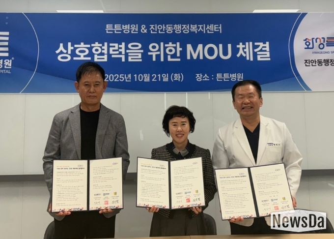 뉴스다 최광묵 기자 | 화성특례시 진안동과 진안동 주민자치회가 21일 튼튼병원(원장 박진수)과 함께 지역 내 저소득층 및 취약계층의 건강 증진을 위한 의료지원 업무협약을 체결했다.