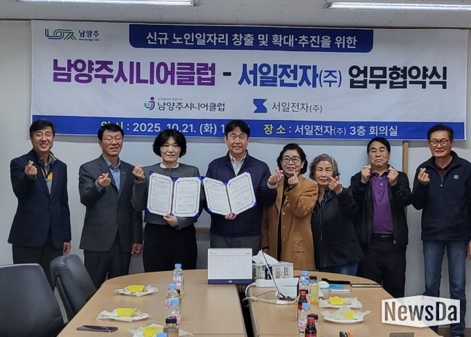 뉴스다 최광묵 기자 | 남양주시는 21일 노인 일자리 전담기관 남양주시니어클럽이 진건읍 진관산업단지 내 서일전자(주)와 노인 일자리 공동체사업단 운영을 위한 업무협약을 체결했다고 밝혔다.
