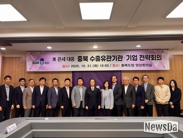 뉴스다 최광묵 기자 | 충북도는 10월 21일 오후 4시 도청 영상회의실에서 KOTRA 충북지원본부, 한국무역보험 충북지역본부 등 9개 수출유관기관*과 충북연구원, 미국 수출기업 3개사**와 美 관세 대응 충북 통상 TF팀 2차 회의로 열린 ‘충북 수출유관기관․기업 전략회의’를 개최했다.