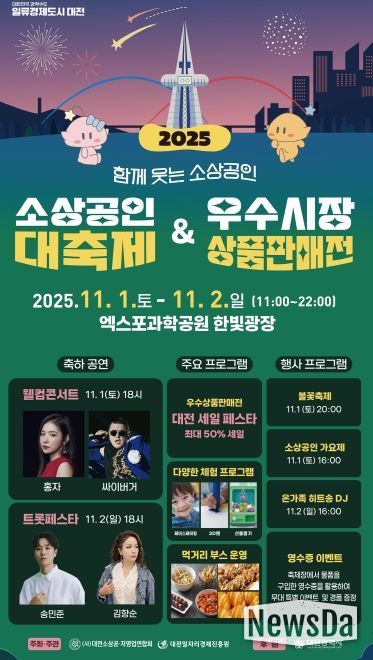 뉴스다 최광묵 기자 | 대전시는 11월 1일부터 2일까지 이틀간 엑스포과학공원 한빛광장 일원에서 ‘2025년 소상공인 대축제 · 우수시장 상품판매전’을 개최한다.