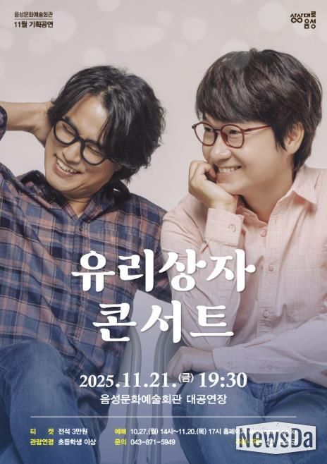 뉴스다 최광묵 기자 | 음성군은 오는 11월 21일 음성문화예술회관 기획공연으로 최장수 감성 포크 듀오 ‘유리상자 콘서트’를 선보인다.