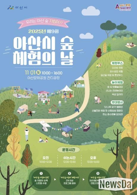 뉴스다 최광묵 기자 | 아산시는 오는 11월 1일 오전 10시부터 오후 4시까지 아산문화공원 잔디광장에서 ‘2025년 제9회 아산시 숲 체험의 날’ 행사를 개최한다고 밝혔다.
