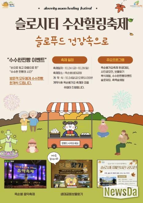 뉴스다 최광묵 기자 | ‘2025 슬로시티 수산힐링축제’가 오는 10월 24일부터 26일까지 3일간 충북 제천시 수산면 옥순봉 생태공원 일원에서 열린다.