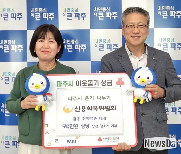 뉴스다 최광묵 기자 | 파주시는 지난 21일 신용회복위원회 인천·경기북부지역본부에서 금융 취약계층을 위한 500만 원 상당의 무선 청소기를 전달받았다고 밝혔다.