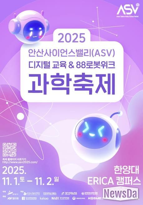 뉴스다 최광묵 기자 | 안산시는 11월 1일부터 2일까지 이틀간 한양대학교 ERICA캠퍼스에서 ‘미래와 함께하는 혁신도시 안산, ASV’라는 슬로건으로 ‘2025 안산사이언스밸리(ASV) 과학축제’를 개최한다고 22일 밝혔다.