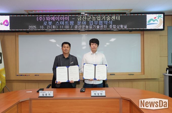 뉴스다 최광묵 기자 | 금산군농업기술센터와 인공지능 로봇 개발 기업 ㈜와에이아이는 지난 21일 센터 종합상황실에서 잎들깨 전용 지능형 수확로봇 개발과 스마트팜 기술 고도화 업무협약을 체결했다.