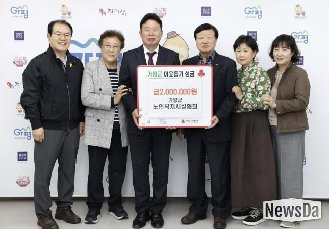뉴스다 최광묵 기자 | 가평군노인복지시설협회는 21일 가평군청을 방문해 지역의 소외되고 어려운 이웃을 돕기 위한 이웃돕기 성금 200만원을 기탁했다.