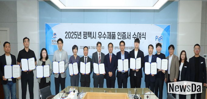 뉴스다 최광묵 기자 | 재단법인 평택산업진흥원은 ‘2025년 평택시 우수제품 선정 지원사업’의 선정평가를 마치고, 지난 9월 29일 인증서 수여식을 개최했다.