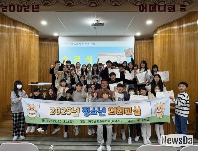 뉴스다 최광묵 기자 | 경기도의회 건설교통위원회 안명규 의원(국민의힘, 파주5)은 10월 21일 파주송화초등학교 시청각실에서 열린 ‘제36회 청소년의회교실’에 참석해 파주 송화초등학교 학생들과 함께 모의의회를 체험하며 민주주의의 가치와 의회의 역할을 함께 나누는 뜻깊은 시간을 가졌다.