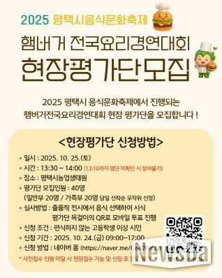 뉴스다 최광묵 기자 | 평택시는 오는 25일 농업생태원에서 ‘2025 평택시 음식문화축제’를 통해 ▲전국 요리경연대회 ▲평택 지역 맛집 및 세계음식 시식·체험관 ▲노 오븐 베이킹 체험관 ▲탄소중립 실천·홍보관 등 다채로운 부스가 운영돼 시민들에게 풍성한 경험을 선사할 예정이다.