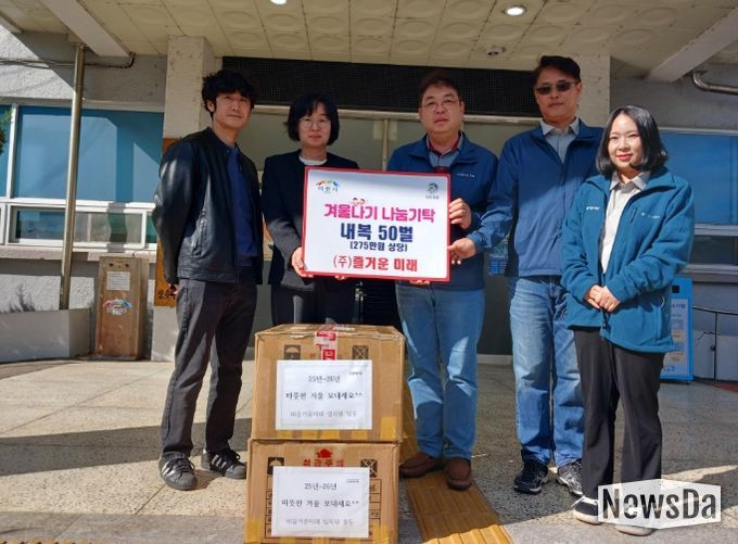 뉴스다 최광묵 기자 | ㈜즐거운 미래에서 10월 22일에 장호원읍행정복지센터에 따뜻한 겨울나기를 위한 내복 50벌(275만원 상당)을 전달했다.