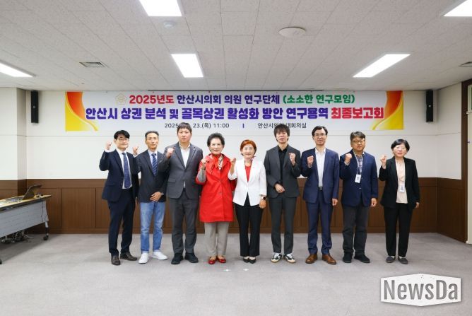 뉴스다 최광묵 기자 | 안산시의회 의원연구단체 ‘소소한 연구모임(대표의원 현옥순)’이 지난 23일 의회 대회의실에서 안산 골목상권의 지속가능한 성장 방안을 모색한 연구용역 최종보고회를 개최했다.