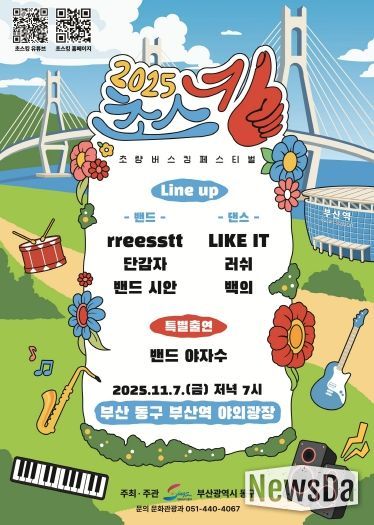 뉴스다 최광묵 기자 | 부산 동구는 오는 11월 7일 오후 7시부터 9시까지, 부산역 야외광장(부산 동구 중앙대로 210)에서 ‘2025년 초량 버스킹 페스티벌’을 개최한다.