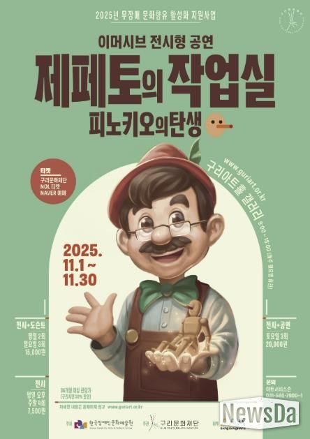 뉴스다 최광묵 기자 | (재)구리문화재단은 한국장애인문화예술원이 주최하는 무장애 문화 향유 활성화 지원사업의 일환으로 몰입형 전시 공연 '제페토의 작업실 : 피노키오의 탄생'을 11월 1일부터 11월 30일까지 개최한다고 밝혔다.