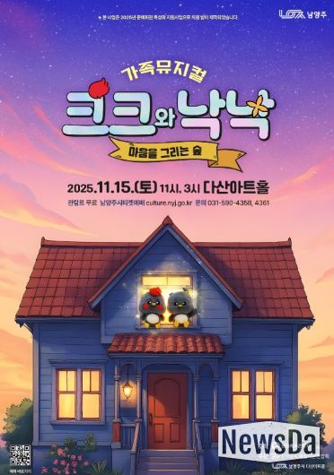 뉴스다 최광묵 기자 | 남양주시는 오는 11월 15일 다산아트홀에서 가족뮤지컬 ‘크크와 낙낙’을 선보인다고 28일 밝혔다.