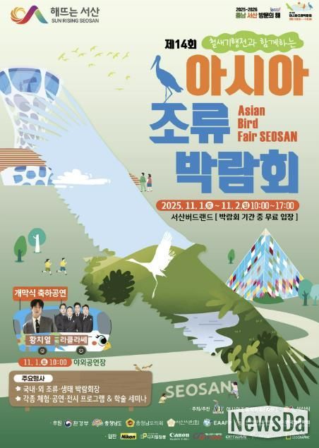 뉴스다 최광묵 기자 | 충남 서산시는 서산버드랜드에서 오는 11월 1일부터 2일까지 ‘한국의 둥지 천수만, 세계의 둥지를 서산에 틀다’를 주제로 제14회 아시아 조류박람회를 개최한다고 밝혔다.