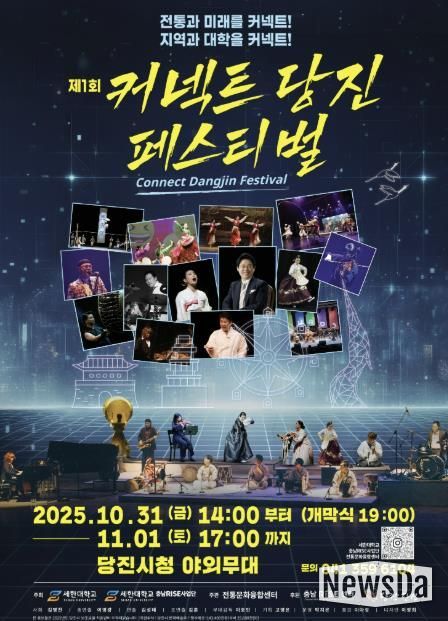 뉴스다 최광묵 기자 | 세한대학교는 충남RISE사업단 전통문화융합센터 주관으로 ‘제1회 커넥트당진 페스티벌’을 개최한다. 행사는 10월 31일 오후 2시 전통 체험부스를 시작으로 축제의 막을 올리며, 오후 7시 개막식을 거쳐 11월 1일까지 이틀간 당진시청 야외무대에서 열린다.