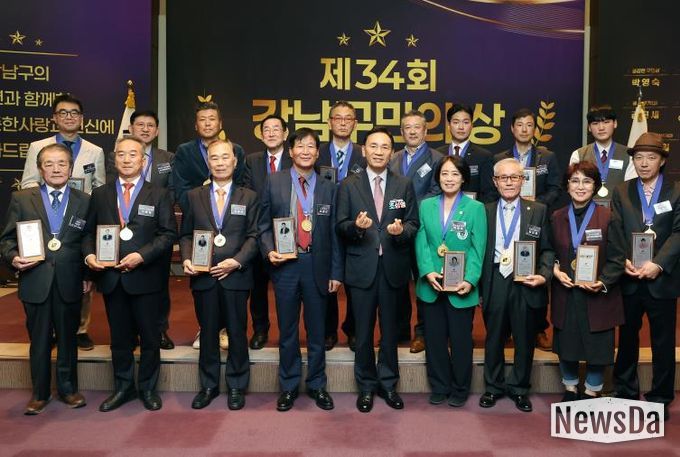뉴스다 최광묵 기자 | 꿈이 모이는 도시, 미래를 그리는 강남구가 지난 10월 28일 코엑스 컨퍼런스룸에서 ‘제34회 강남구민의 상’ 시상식을 열고, 지역사회 발전과 주민 복지 증진에 기여한 구민 12명과 5개 단체(법인)에 상을 수여했다.