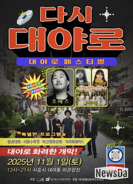 뉴스다 최광묵 기자 | 시흥시는 올해 처음으로 열리는 ‘대야로 페스티벌-다시, 대야로’가 오는 11월 1일 대야동 미관광장에서 개최된다고 밝혔다. 이번 축제는 시흥시와 (재)시흥시도시재생지원센터가 주최하고, 대야동활성화추진위원회가 주관해 진행된다.