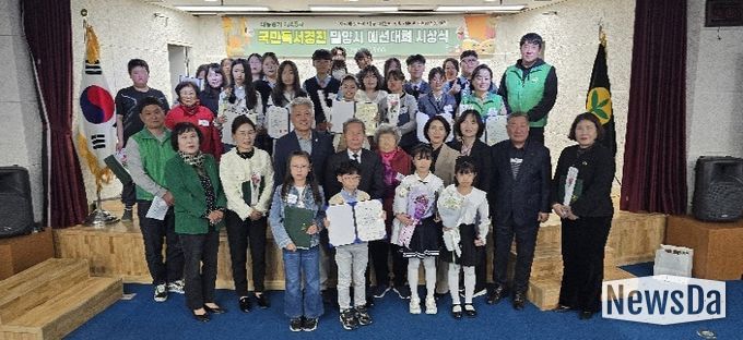 뉴스다 최광묵 기자 | 새마을문고밀양시지부(회장 박군희)는 밀양시립도서관에서 입상자와 학부모, 새마을회원, 내빈 등 70여 명이 참석한 가운데 ‘대통령기 제45회 국민독서경진 밀양시 예선대회 시상식’을 개최했다.