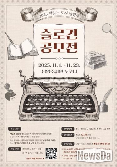뉴스다 최광묵 기자 | 남양주시는 11월 1일부터 23일까지 ‘2026 책읽는 도시 남양주 슬로건 공모전’을 개최한다고 밝혔다.