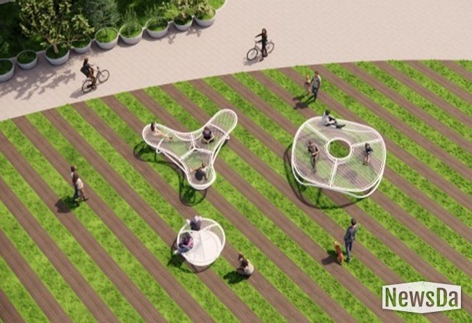 휴게공간 '한들한들'은 그물망에 누워 자연과 함께 가볍게 흔들리며 휴식하는 이미지를 형상화한 디자인 휴게시설물로, 3가지 타입의 각기 다른 모델을 구현하여 이용 시민들에게 3人 3色 즐거운 휴식 경험을 제공할 계획이다.