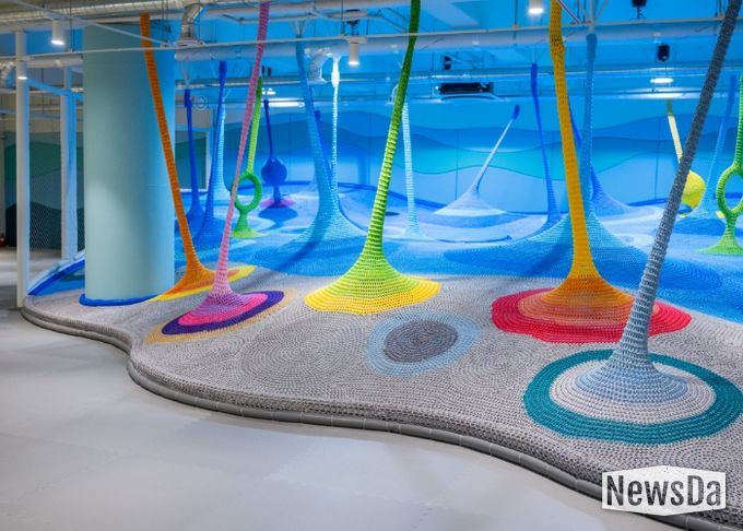‘갯벌놀이터’는 갯벌의 생태적 요소와 환경적 특성을 바탕으로, 그물 구조를 예술적으로 구현한 비정형 놀이시설이 특징이다. 공간 자체가 하나의 예술적 체험으로 작동하며, 어린이들이 갯벌의 역동성과 생명력을 몸으로 느끼고 탐험할 수 있도록 설계됐다. ‘갯벌책방’은 약 2,000권 규모의 서가를 갖춘 자율 운영 독서 공간으로, 놀이와 독서를 함께 즐길 수 있는 열린 문화공간이다. 경기문화재단 임직원, 지역 주민, 경기도 내 출판사 등의 자발적인 도서 기증으로 서가가 채워지며, 기증자에게는 경기문화재단 기부캠페인 ‘문화이음’을 통한 기부 혜택이 제공된다. ‘갯벌마당’은 탄성 고무칩 바닥에 다양한 색상과 형태의 패턴이 조성된 야외 놀이터로, 어린이들이 즐기는 야외 마당 놀이(멀리뛰기, 사방치기, 원마커 등)를 할 수 있도록 구성되어 있으며 자유로운 신체 활동이 가능하다. 인근 테라스에는 인조잔디와 야외용 테이블·의자가 마련되어 있어 보호자들이 아이들을 가까이에서 지켜보며 휴식을 취할 수 있다.