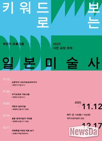 제주도립미술관은 11월 12일부터 12월 17일까지 수요일 오후 2~4시 미술관 강당에서 ‘2025 시민 교양 강좌’ 하반기 프로그램 '키워드로 보는 일본미술사'를 운영한다.