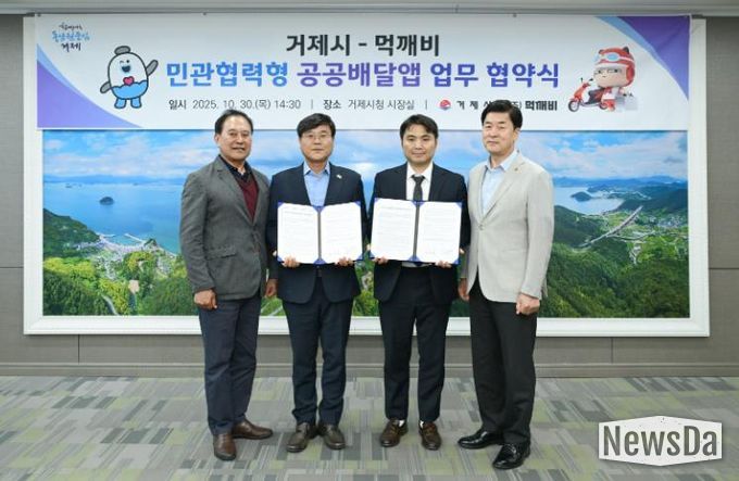 뉴스다 최광묵 기자 | 거제시는 30일 거제시청 시장실에서 ㈜먹깨비와 함께 민관협력형 공공배달앱 운영을 위한 업무협약을 체결했다.