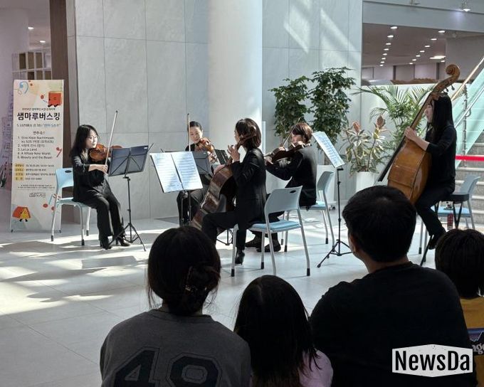 뉴스다 최광묵 기자 | 지난 25일 샘마루도서관에서 열린 ‘샘마루버스킹–현악 5중주’ 공연이 시민들의 뜨거운 관심 속 마무리됐다.