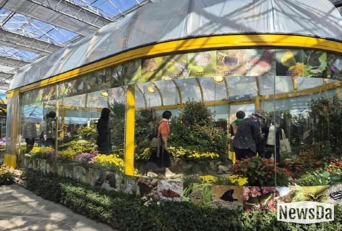 ‘나비의 가을정원’은 나비곤충생태관 내 ‘명품 국화분재 전시관’ 속 특별 전시 공간으로, 국화 향기 속에서 생동감 넘치는 나비의 날갯짓을 감상할 수 있도록 구성됐다.