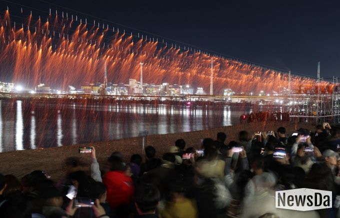 뉴스다 최광묵 기자 | 포항시 송도 해수욕장이 1일 밤 낙화의 불빛과 음악, 그리고 시민들의 환호로 환하게 빛났다.
