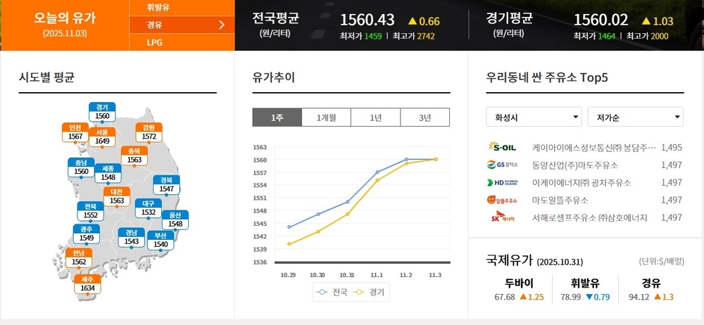 ▲화성시 경 유 제일 싼 주유소 1495원 케이아이에스정보통신(주)봉담주유소
