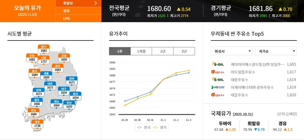 ▲화성시 휘발류 제일 싼 주유소 1605원 케이아이에스정보통신(주)봉담주유소