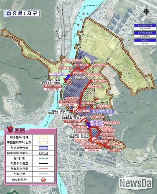 하수도정비 중점관리지역으로 지정된 ‘유림1지구 및 중앙지구’의 면적은 약 1.08㎢다. 이 지역은 하수관로의 통수 능력이 부족하고, 하천 수위가 상승할 경우 내수 배제가 어려운 지역으로 꼽혔다.