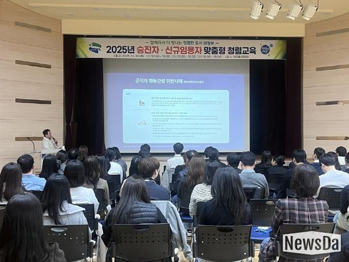 뉴스다 최광묵 기자 | 의정부시는 10월 30일 시청 태조홀에서 2025년 승진자 및 신규임용자 200여 명을 대상으로 맞춤형 청렴교육을 실시했다.