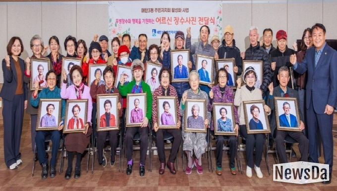 뉴스다 최광묵 기자 | 수원시 영통구 매탄3동 주민자치회는 지난 10월 31일 매탄3동 행정복지센터에서 ‘어르신 장수사진 전달식’행사를 진행했다.