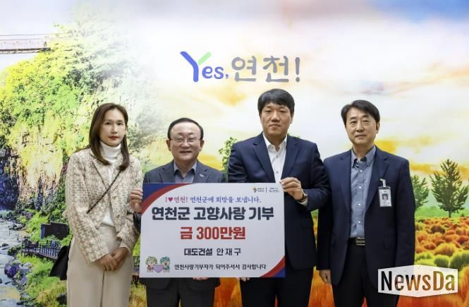 뉴스다 최광묵 기자 | 연천군은 11월 3일 군수실에서 고향사랑기부제 기탁식을 열고, (주)대도건설 안재구 대표로부터 300만 원의 고향사랑기부금을 전달받았다고 밝혔다.