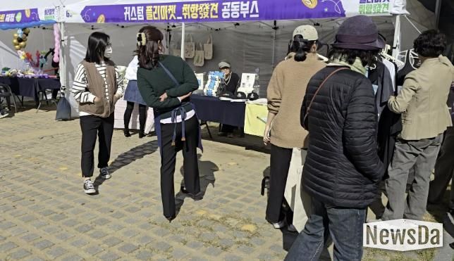 현장에는 약 30개의 판매 및 체험 부스가 운영돼 의류, 생활소품, 패션잡화, 수공예품 등 다양한 품목이 전시·판매됐다. 부스 운영에 참여한 주민들은 직접 기획하고 제작한 상품을 통해 학습의 결과를 선보였다.