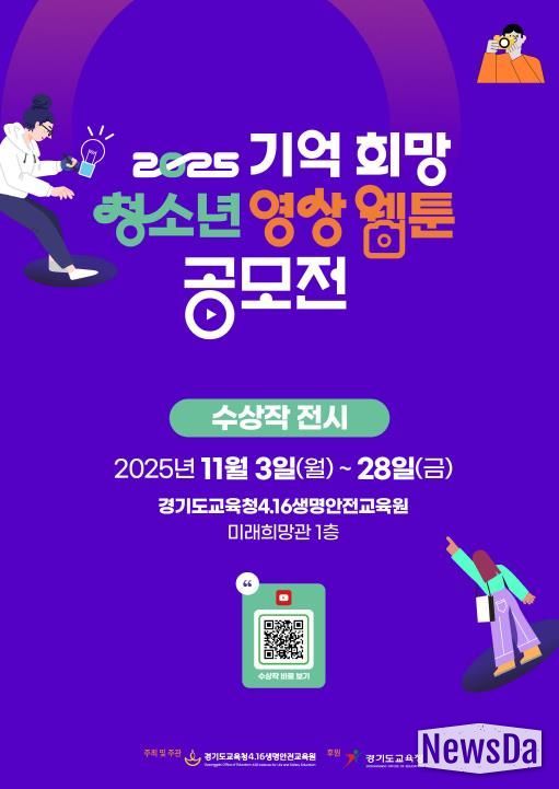 3일부터 28일까지 경기도교육청4.16생명안전교육원 미래희망관 1층 전시공간에서 진행되는 이번 전시에서는 영상 부문 10점, 웹툰 부문 10점 등 총 20점의 작품을 선보인다.