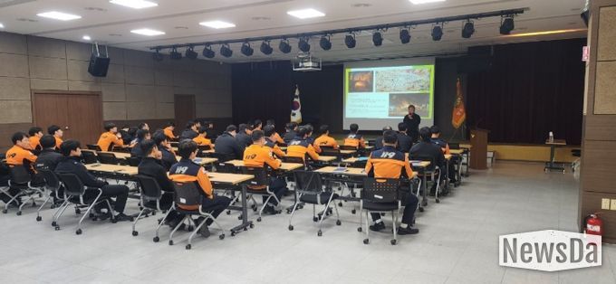 뉴스다 최광묵 기자 | 양주소방서는 10월 30일 급증하는 전기차 등 친환경자동차 화재에 신속하고 효과적으로 대응하기 위해 기아자동차 관계자를 초빙하여 현장대원 및 내근직원 60여명을 대상으로 실전형 교육훈련을 실시했다.