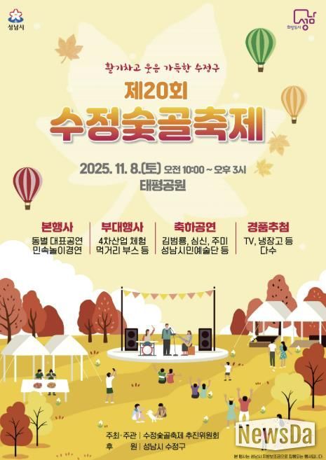 뉴스다 최광묵 기자 | ‘제20회 수정숯골축제’가 오는 11월 8일 오전 10시~오후 3시 태평공원(수정구 수정로 7)에서 열린다.