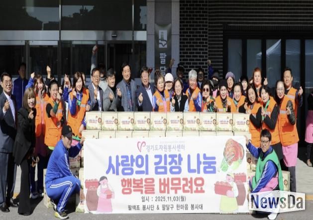 뉴스다 최광묵 기자 | 수원시 팔달구는 지난 11월 3일, 팔달구청 앞마당에서 팔색조봉사단과 팔달구 한마음봉사대가 함께하는 ‘사랑의 김장 나눔 행사’를 열고, 정성껏 담근 김장김치를 관내 취약계층 200가구에 전달했다.